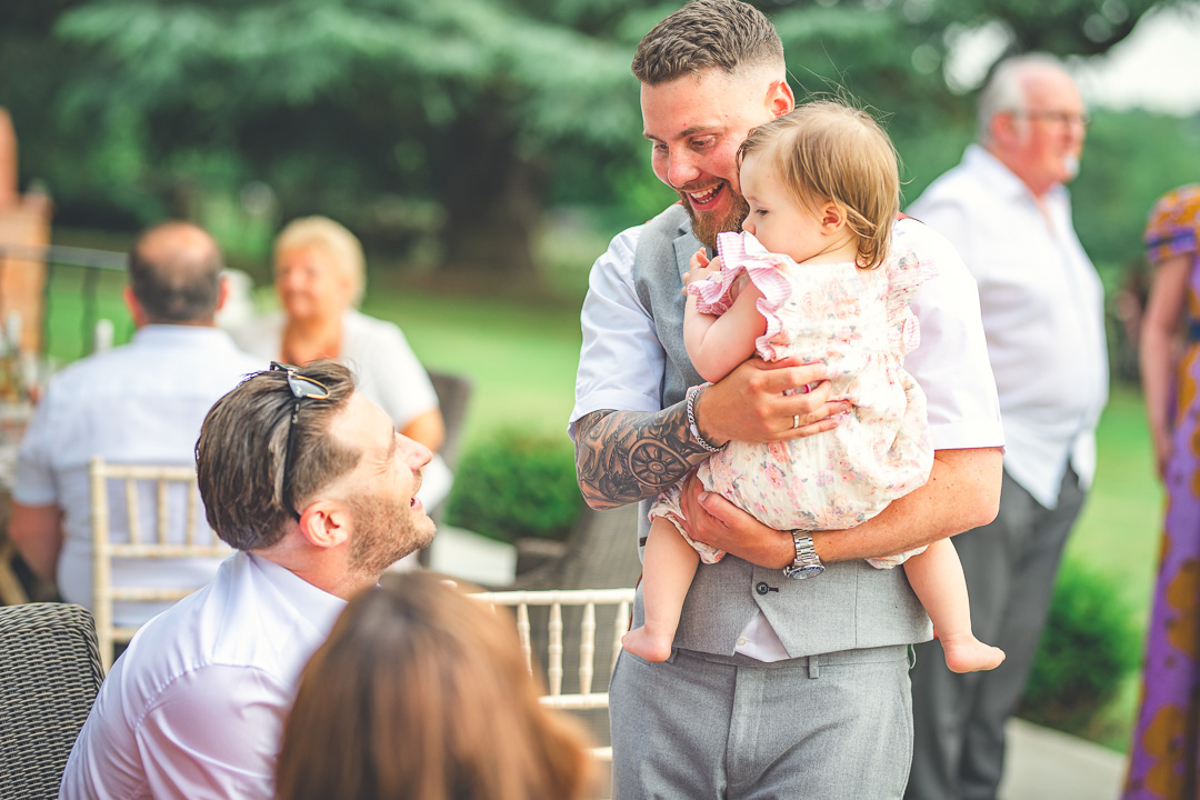 Carian & Luke’s reception kicked off in the sunshine out on Ashton Lodge’s lawn – good vibes, cold drinks, and guests already eyeing up the canapé trays. Bit of lawn mingling, bit of laughter, and just the right level of chaos with the kids legging it around. Exactly how a summer wedding should feel.